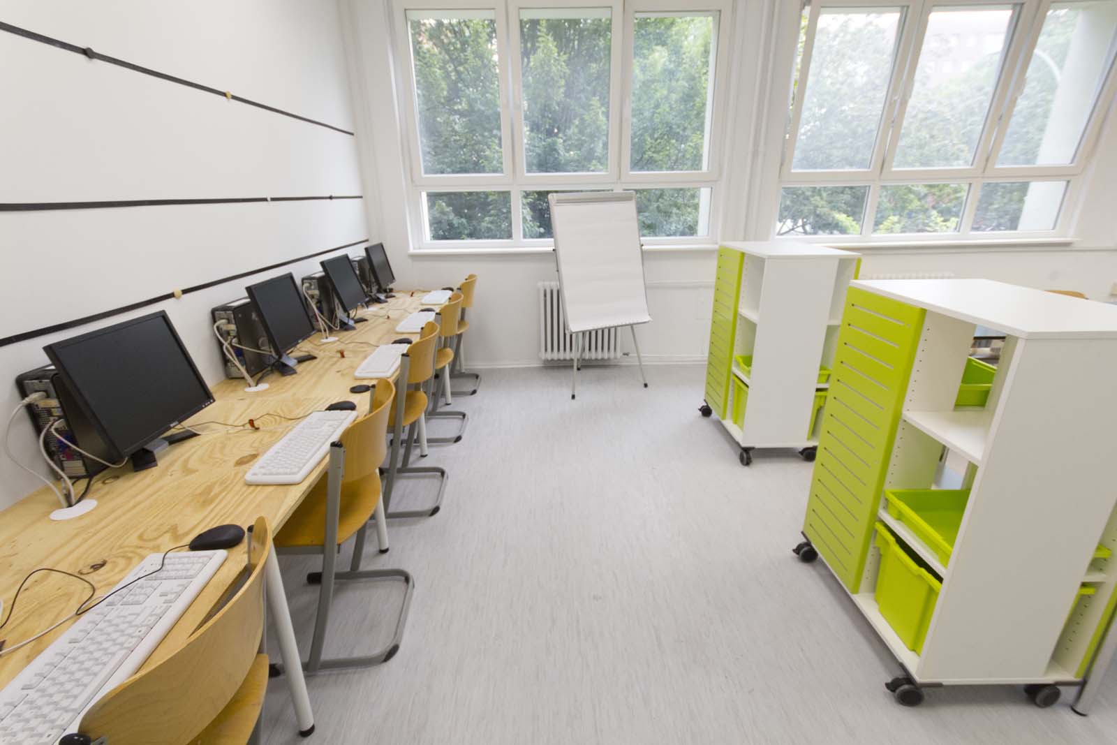 In summer 2015, the school moved to a larger building, which required once more a practical design solution. The scaling of the building, and various experiences by teachers and pupils, offered the opportunity to verify the existing design and maintain or improve the interior. (pictures will follow).